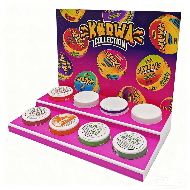 Custom Acrylic L-shaped desktop display stand for snus or vape that are convenient for trial or sampling, a