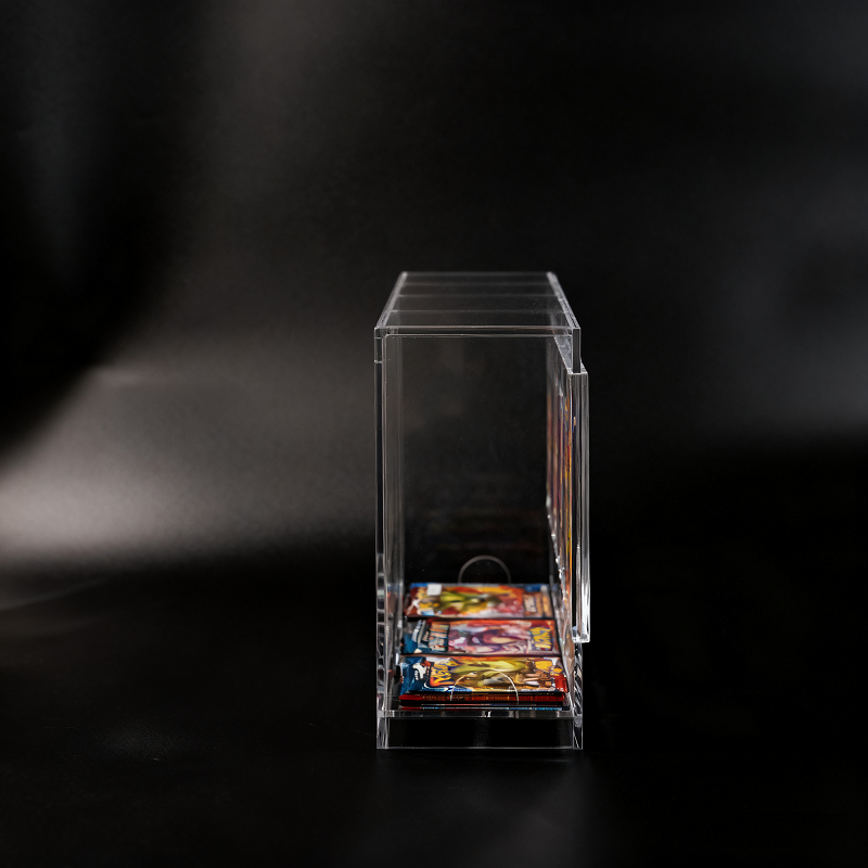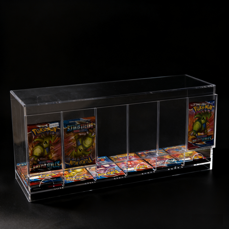 6格亚克力 TCG 卡牌自动分发展示盒:采用高透亚克力材质,支持自动出卡设计,方便玩家快速取放卡牌,同时清晰展示卡牌细节,是游戏店、卡牌社的必备陈列工具。