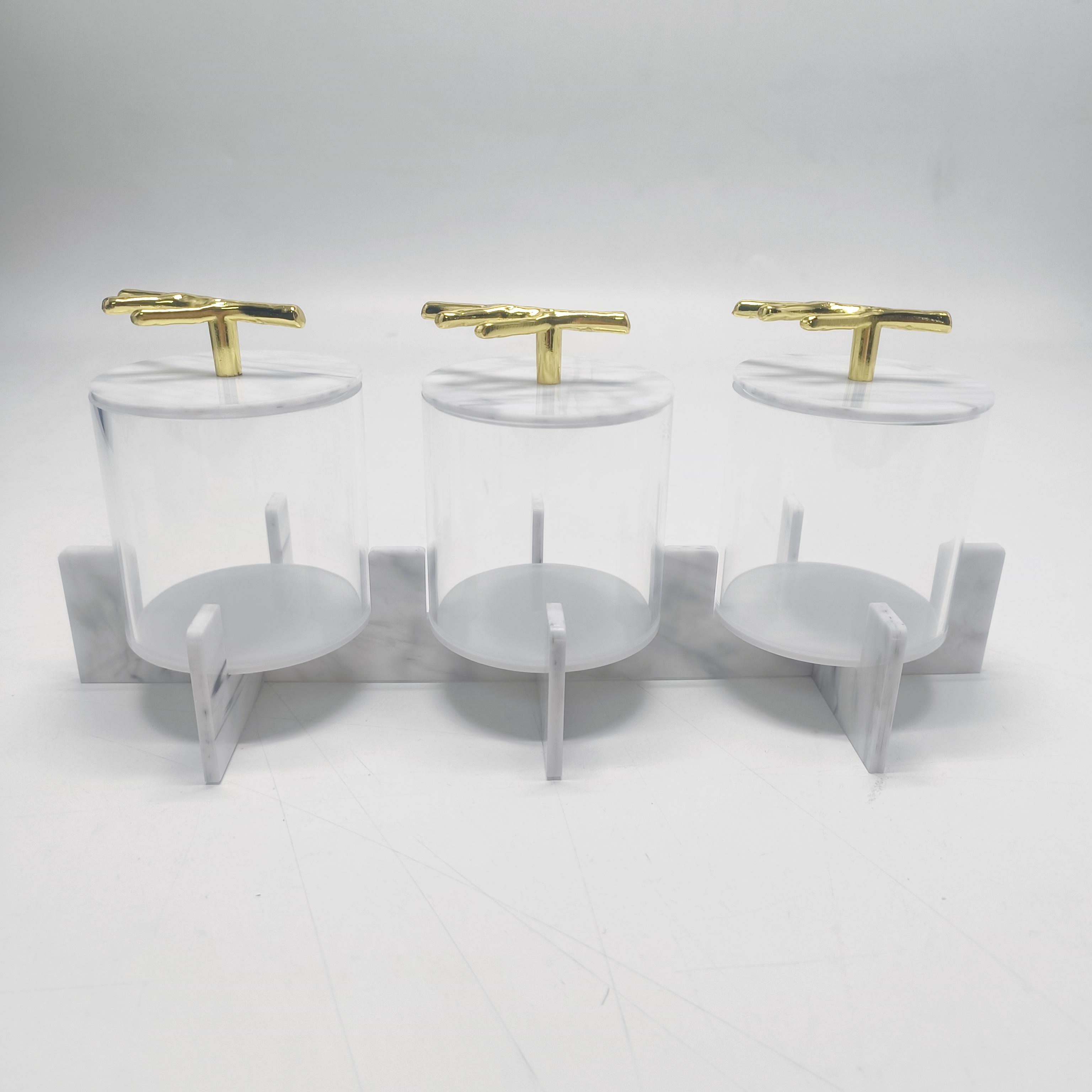 这款高端亚克力调料碗套装,以透明亚克力碗身、精致的碗盖和金属勺子,营造出优雅的氛围,处处彰显品质感。现代感十足的亚克力底座抬高了碗身,不仅方便使用,更提升了整体设计的奢华感。产品支持两种使用模式:既可单独使用单个碗,也可整套收纳,满足不同场景的需求。同时,该套装还可与同系列的其他产品(如锅垫、置物架、杯子等)搭配使用,轻松打造统一的高品质用餐空间风格。