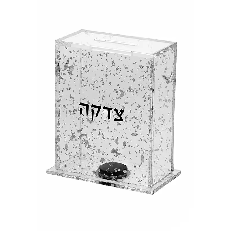 高端定制亚克力慈善捐款箱(Lucite Tzedakah 捐款箱)采用精选的金色、银色或大理石纹亚克力材质制成,每种材质都拥有精致的纹理和独特的外观。每个捐款箱均可根据您的喜好进行定制。箱底采用透明硅胶密封设计,确保密封严实,同时方便取出硬币。这种高端风格与实用细节的完美结合,充分展现了定制工艺的精湛技艺。