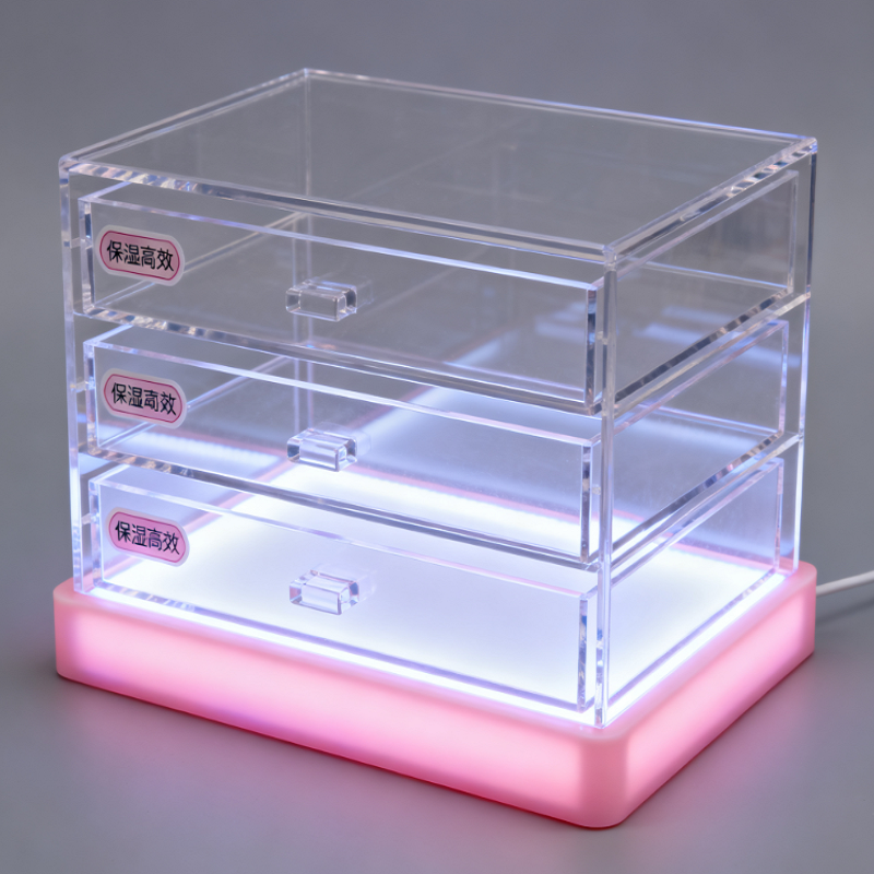 定制式台面香水瓶展示架 化妆品亚克力展示架 带有 LED 灯照明的化妆品展示支架