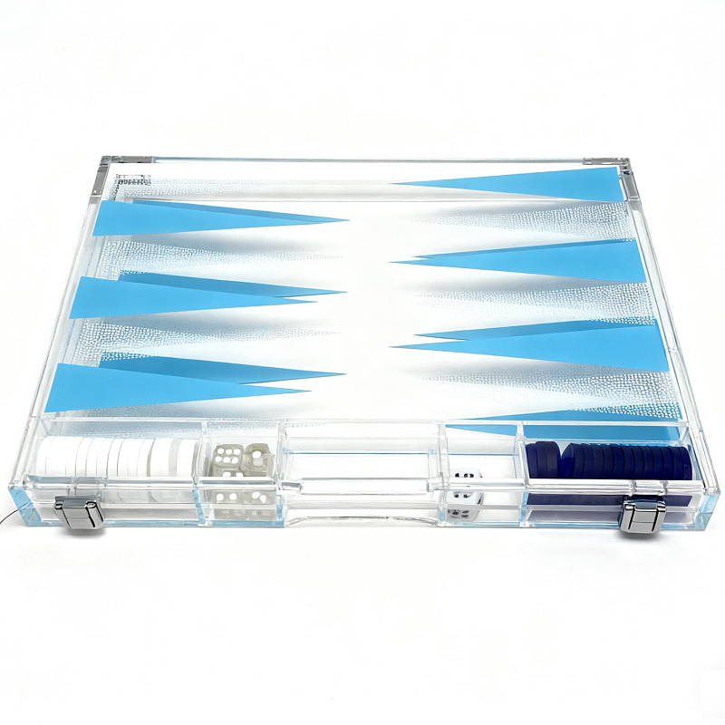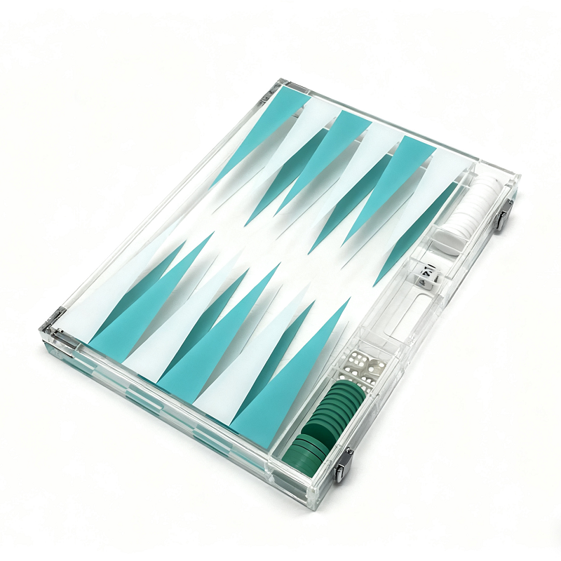 双陆棋棋盘布局清晰,让游戏过程更加顺畅。闭合时,棋盘通过磁吸或金属卡扣固定,内置收纳格可整齐存放 30 余粒棋子和 5 颗骰子,便携又有序。
