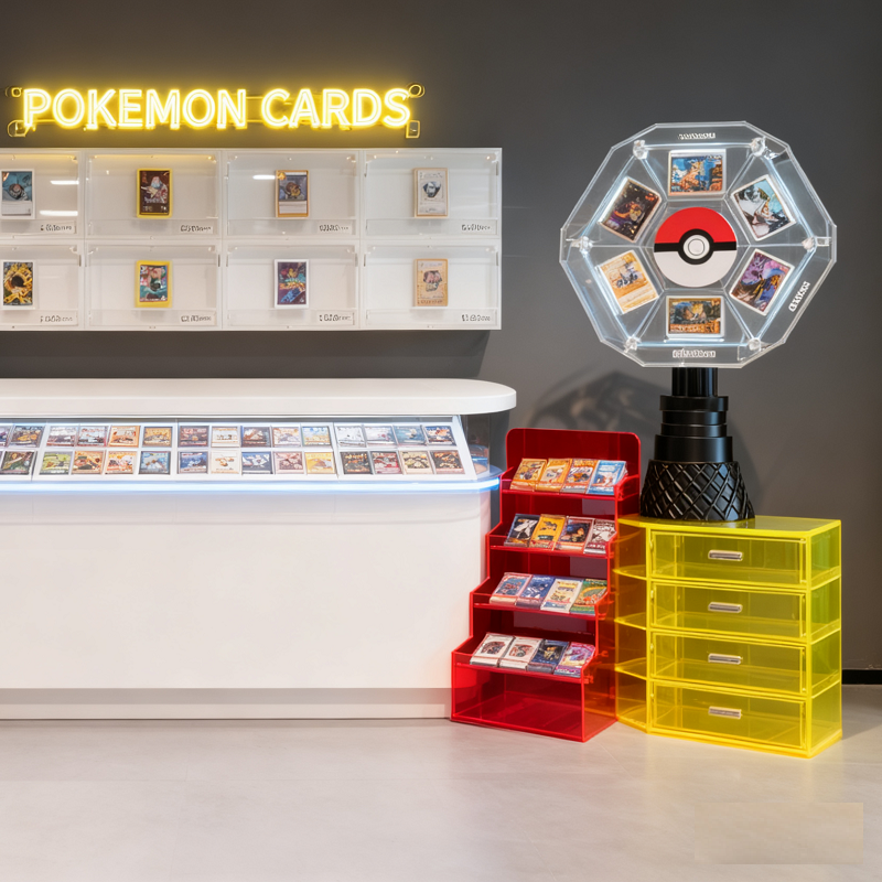 这款亚克力宝可梦卡牌展示架采用高透耐用材质制作,既能有效防尘防损,又能完美展现卡牌设计细节。它兼容标准尺寸的宝可梦卡牌,并配备安全闭合结构,为你的收藏提供全方位保护。