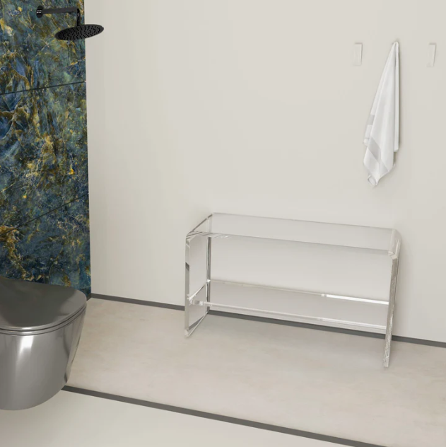 This sleek shower bench is the ideal modern seat, chair, and storage area for a modern shower. Our premium clear acrylic is ideal for the bathroom and shower environment. It is shatter-proof and withstands regular attacks from hot water and bathroom chemicals.