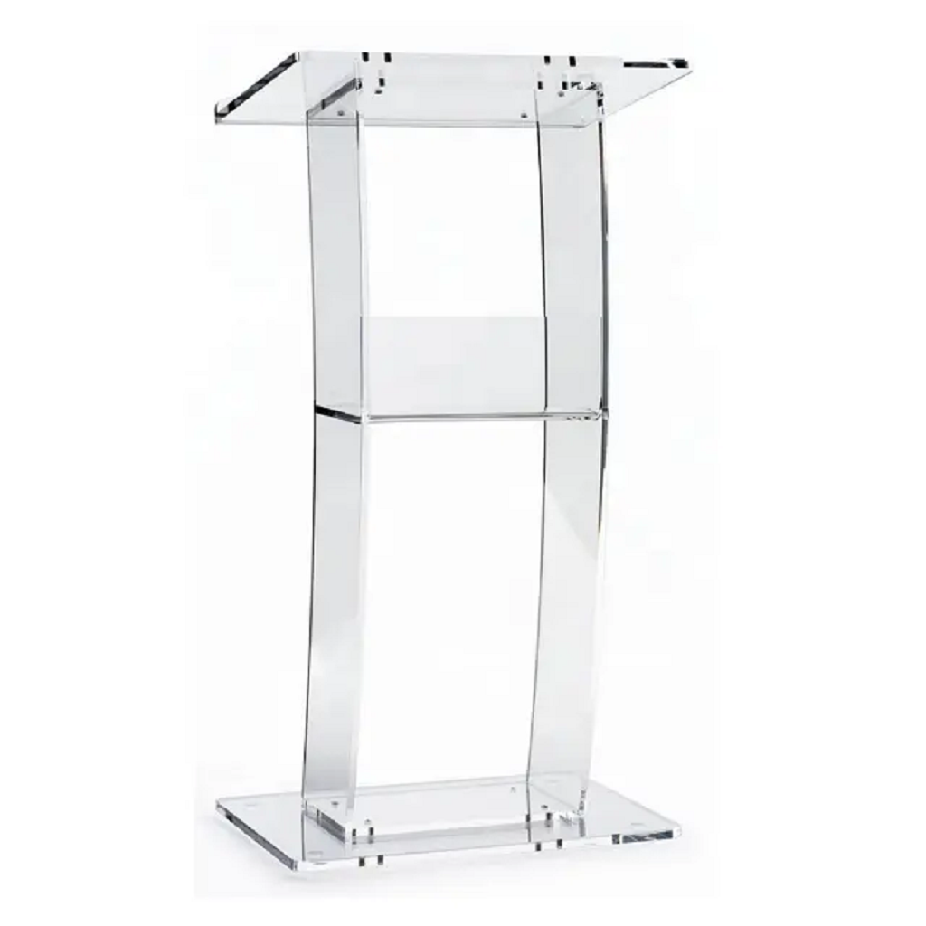 这款高品质亚克力材质的讲台配有置物架,可放置常用的礼仪用品。它赋予演讲者独特的风格,比传统讲台和演讲桌更显简洁时尚。
