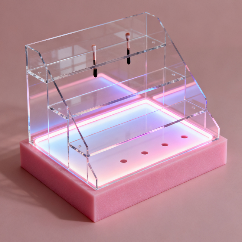 定制式台面香水瓶展示架 化妆品亚克力展示架 带有 LED 灯照明的化妆品展示支架